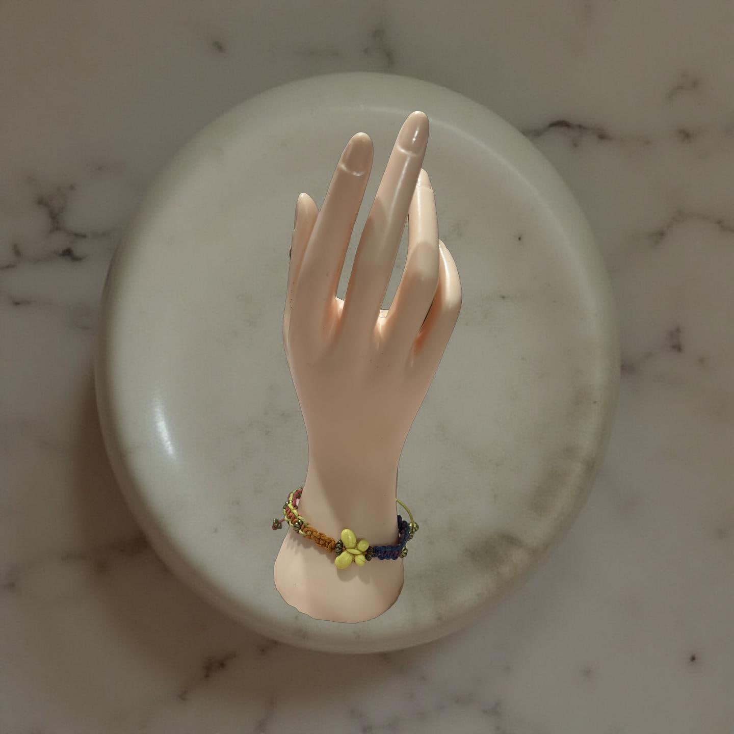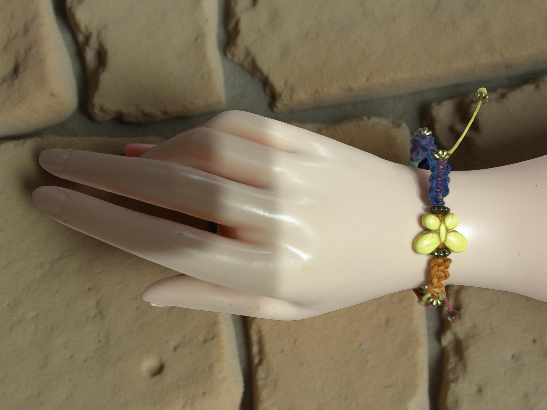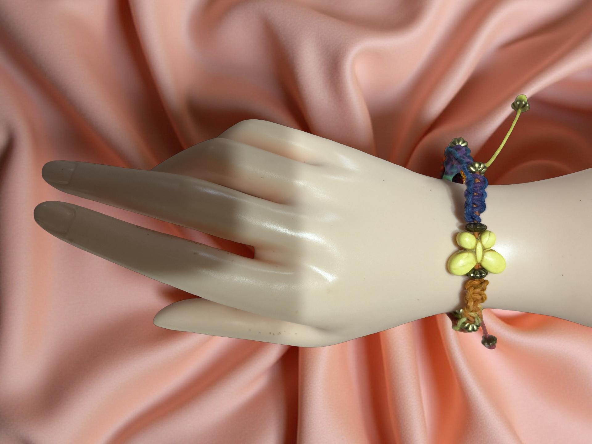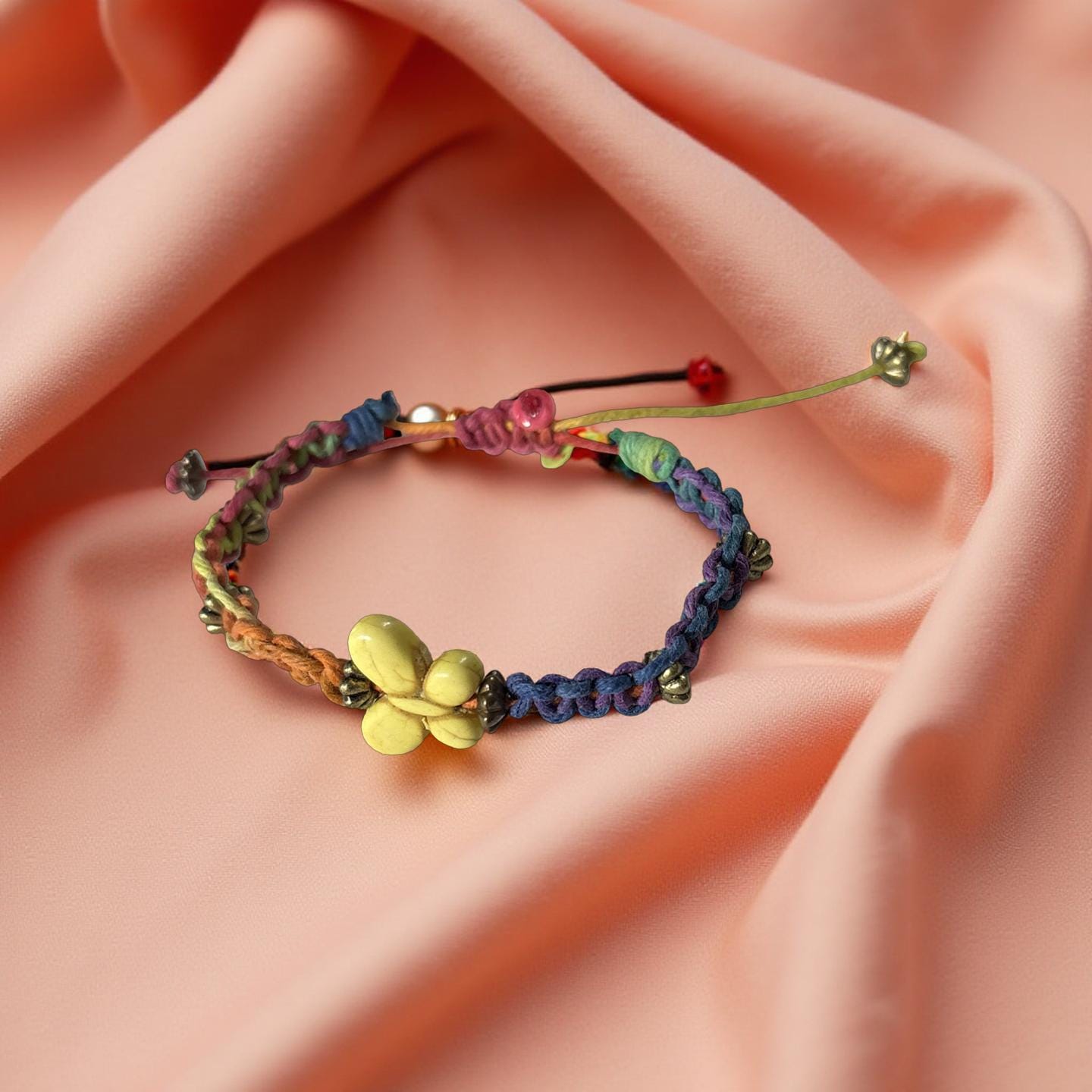 Macrame bracelet with ceramic pink Butterfly in woven square knot style. Adjustable upto 10 inches.