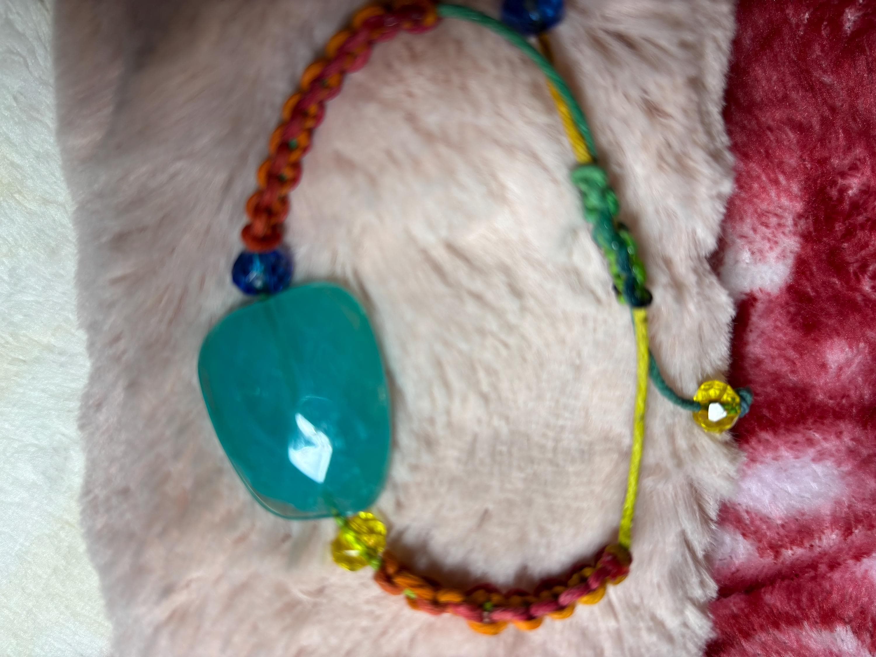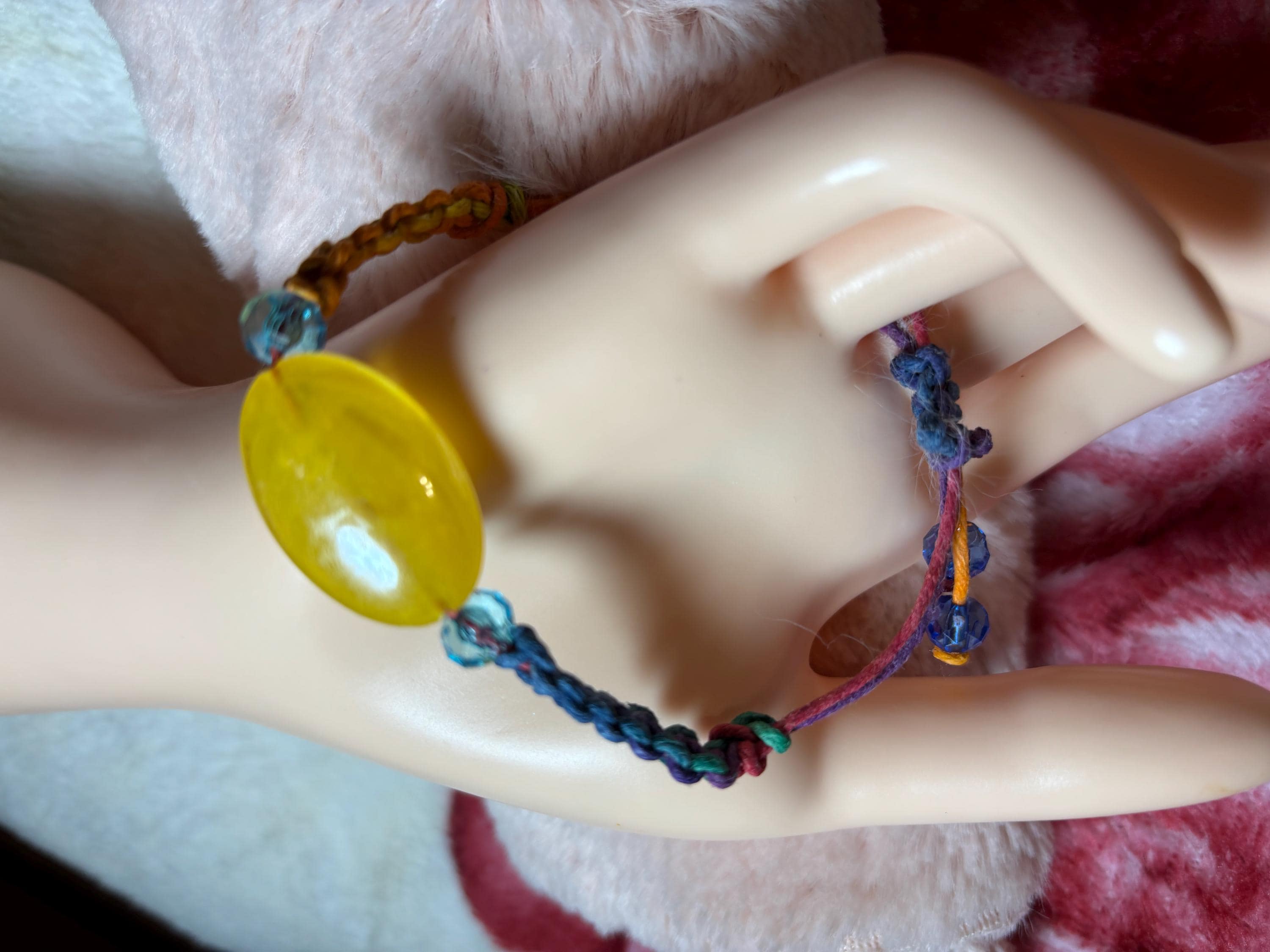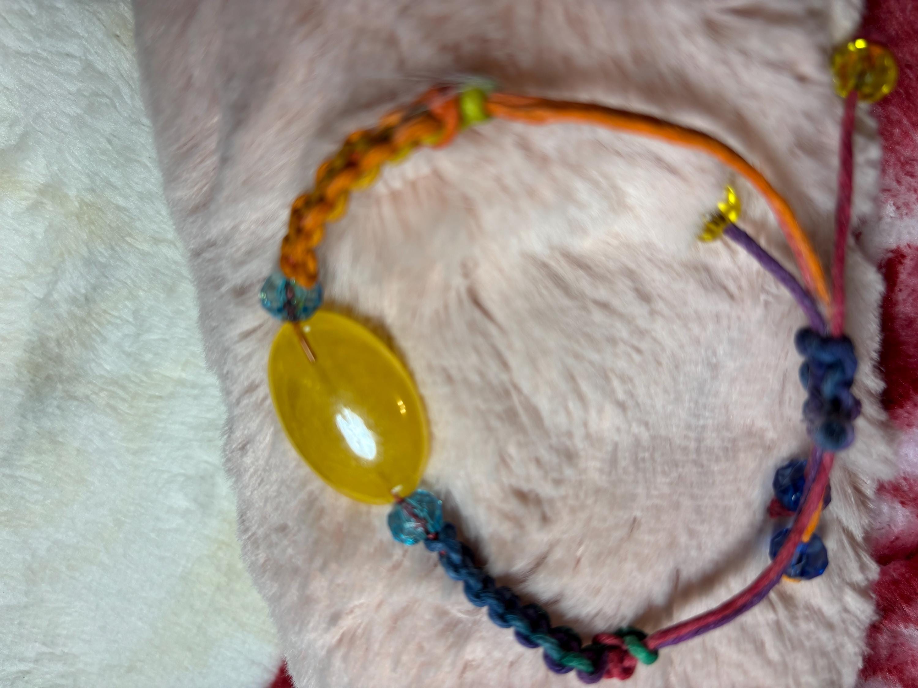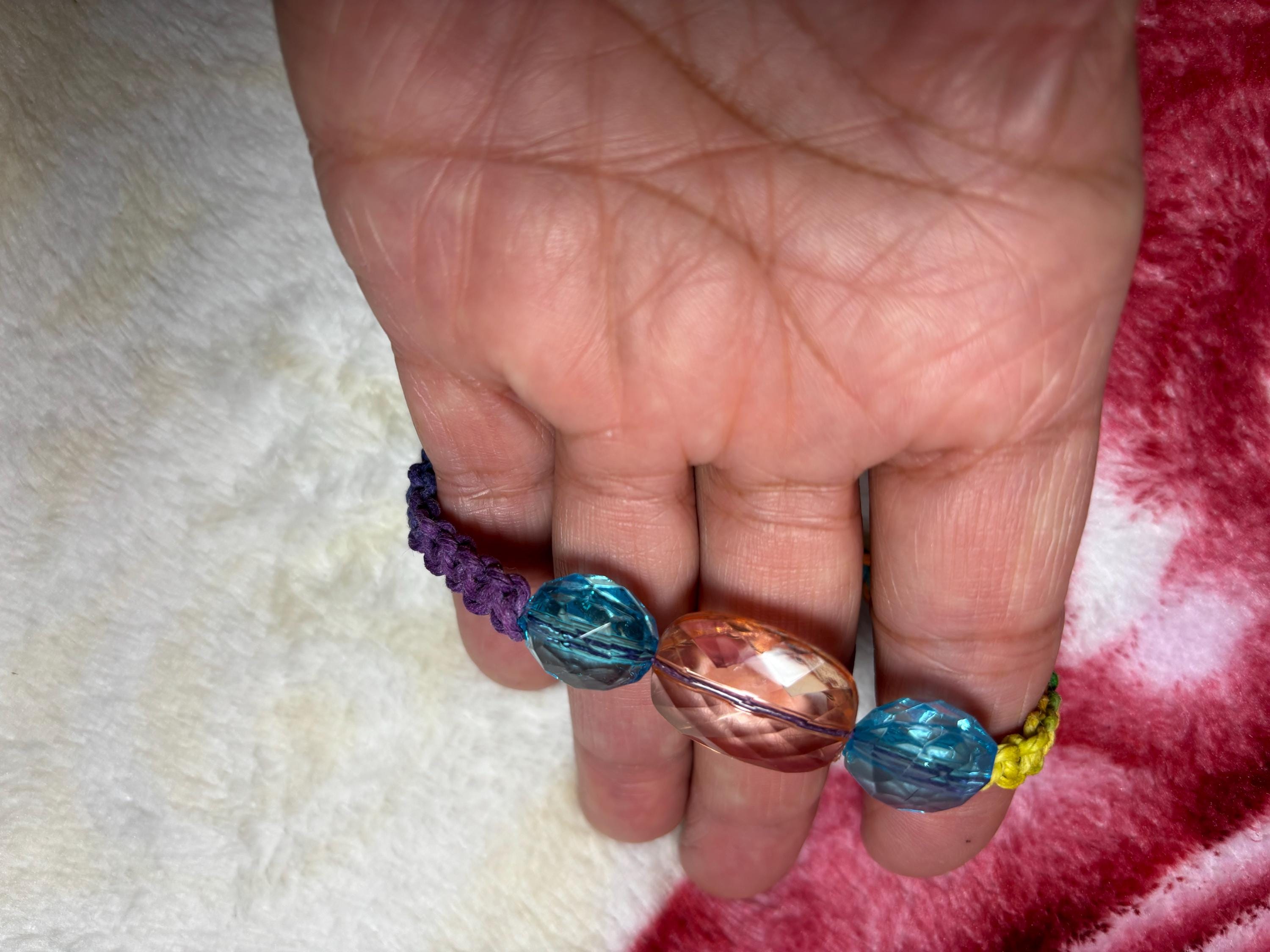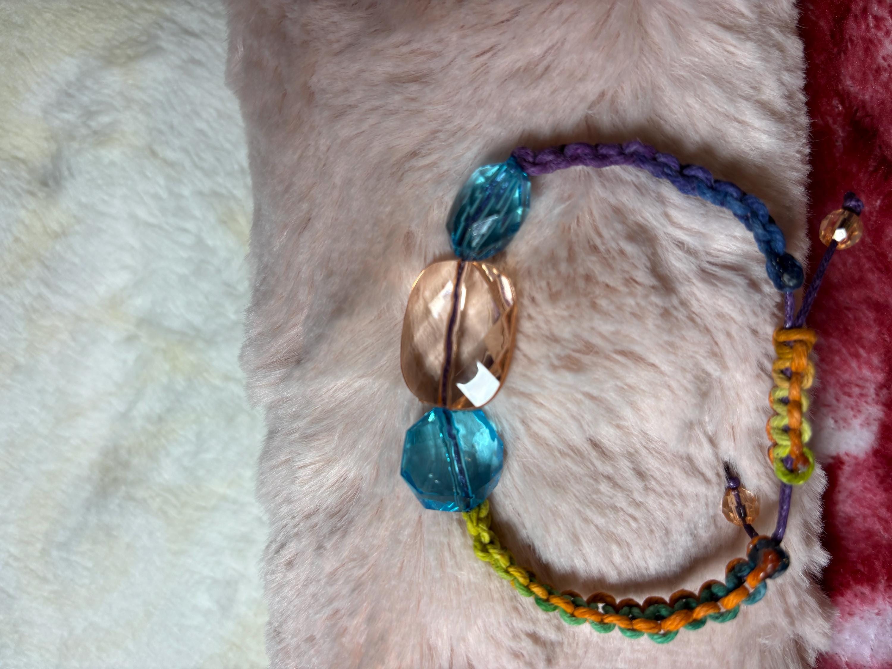 Three colorful braided bracelet. Selling individually made with glass beads and Aurifil floss thread. Bracelets adjustable up to 10 inches.